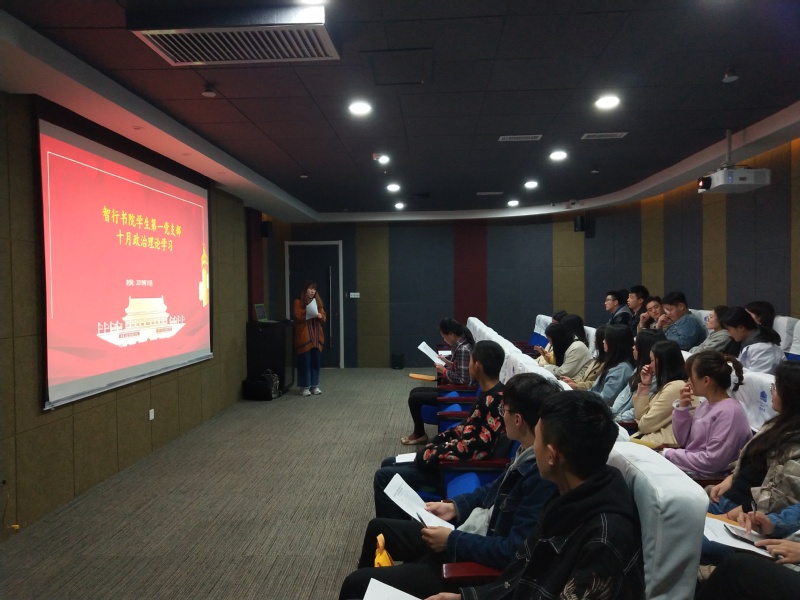 为了更好的贯彻党中央政治理论思想,学习党的精神,10月16日,智行书院学生第一党支部在图书馆多媒体一教室开展智行书院学生第一党支部政治理论学习。会议由党支部书记孙峰主持,党支部全体党员参加。