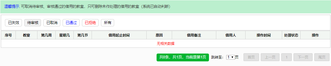 二、管理员审核网上借用教室;