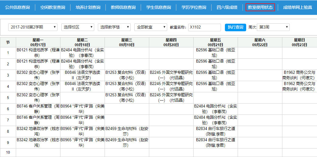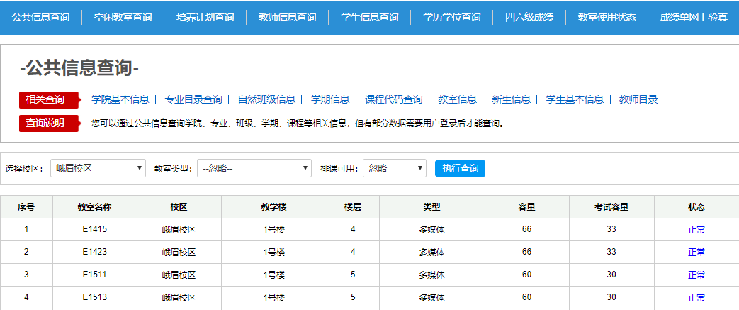 四、教室公用信息查询