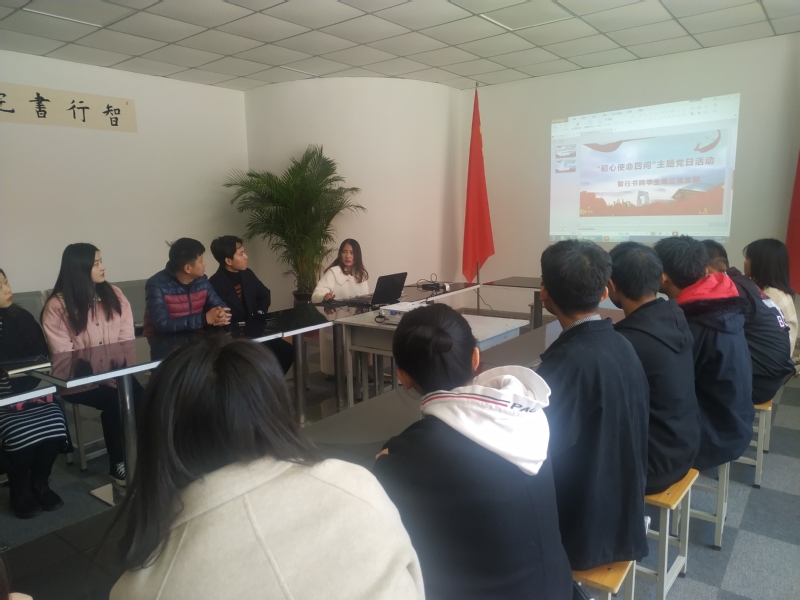 为加强智行书院第三党支部党员精神思想建设,认真学习全会精神,11月14日下午智行书院第三党支部组织开展“初心使命四问 ”主题党日活动会议。党支部书记李莹莹主讲,第三党支部全体党员和预备党员参加此次会议。