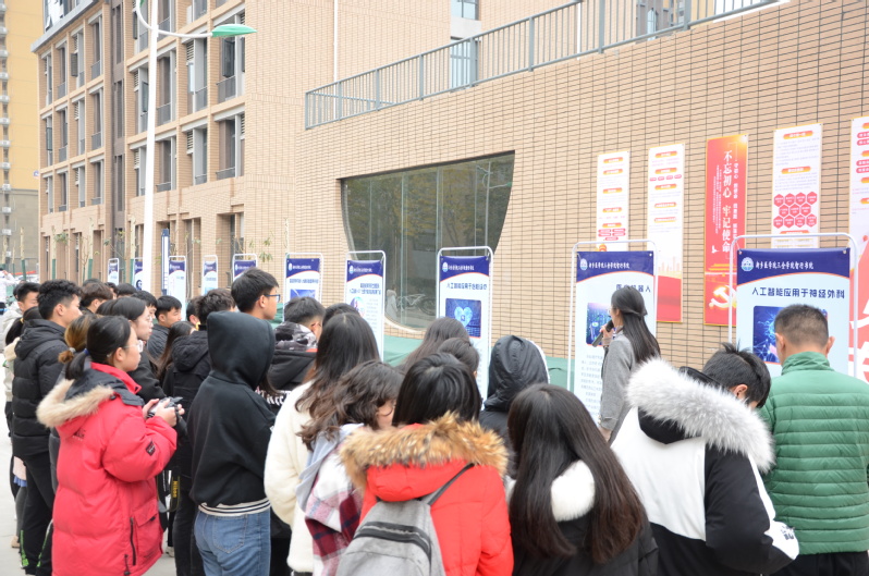 为丰富我校师生医学人工智能知识,提高广大师生的智能素养及创新意识,11月29日,智行书院于园区正门处开展了以“智能创想,智见未来”为主题的医学人工智能展览活动,我校副院长邱永建出席活动并参观展览。本次活动包括“一展一会一签”三个部分,即一个主题展演、一场主题讨论会和一场签约仪式。
