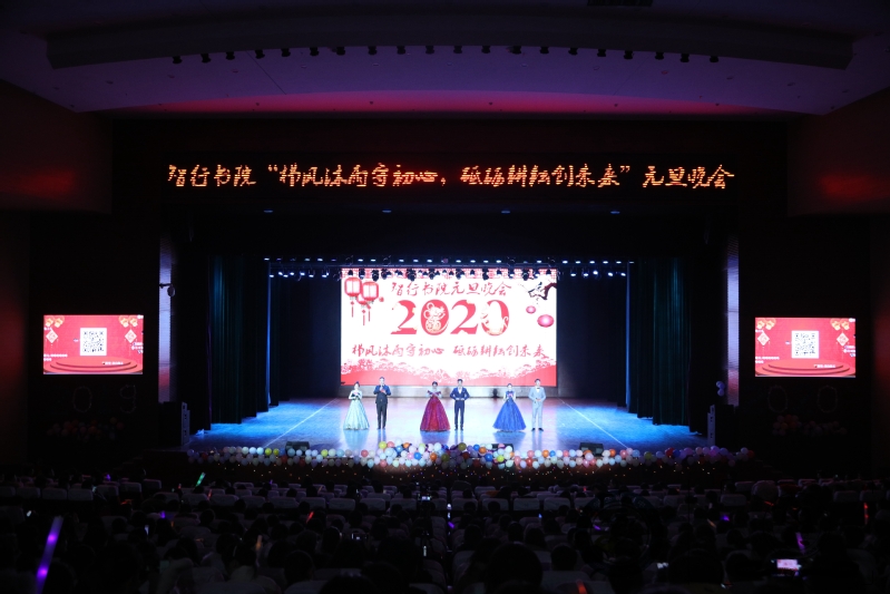 琴湖晓月畔,2019年12月31日跨年夜的闻德礼堂,准时迎来了智行书院“栉风沐雨守初心、砥砺耕耘创未来”2020年元旦晚会倒计时的钟声。此次元旦晚会邀请到了新乡医学院三全学院副院长顾欢、图书馆馆长华玉民、外事部副主任助理卢明臣,同时到场的还有各职能部门、各院系、各书院的老师,智行书院全体教职工和学生近千人共同观看。