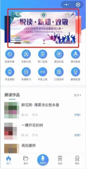 1.进入活动页面进入学校线上朗读平台,点击“悦读·新知·致敬”活动页面