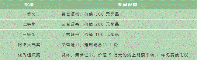 同时,优秀作品将被优谷朗读平台和各参赛单位收录,进行线上线下展播。