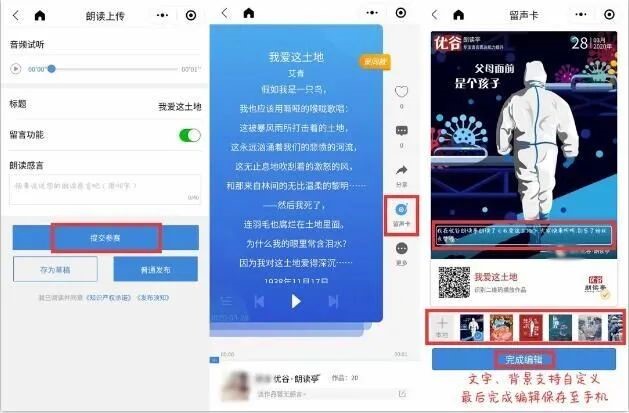 ⑤朗读完成后,点击“提交参赛”,将作品提交到该活动中即可。