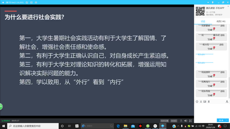 本次智行书院以“小我融入大我·青春献给祖国”为社会实践主题,并向智行学子提出“契合主题,确保安全,就近就便,探索创新,务求实效”五条要求,确保青年学生可在社会实践活动中锤炼本领、感悟真知。暑期实践内容将围绕“助力疫情防控和复工复产”、“投身打赢脱贫攻坚战”、“参与乡村振兴战略实施”、“推动新时代文明宣讲服务”、“开展返家乡社会实践”五个内容展开,面对疫情期间的形势和要求学生可以自由选择实践形式,鼓励采用“互联网+社会实践”的新模式,以“云组队”、“云调研”、“云访谈”等网络形式推动线下线上融合联动,保障实践活动的正常进行。在各辅导员开展的组织动员会议中,闫亚菲老师讲出“暑期社会实践要结合专业知识,积极宣传学校的校园文化,树立三全学子良好的精神风貌”;杨卫红老师强调“要按照习近平总书记对新青年的要求,做到爱国,励志,求真,力行,成为担当民族复兴的时代新人。”暑期社会实践活动是对自我的肯定和剖析,在实践中检验真知,不断进行自我革命和升华,成为更有担当和能力的自己。