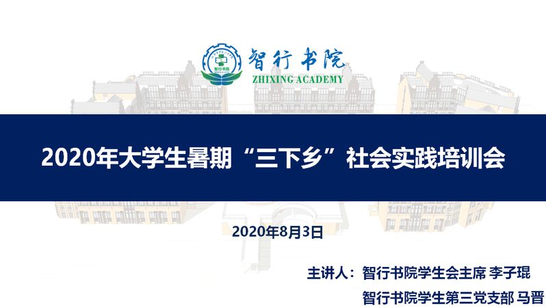为确保书院2020年暑期社会实践活动顺利开展,8月3日晚智行书院学生会、青志联在腾讯课堂组织召开暑期社会实践线上培训会。会议由书院学生会干部李子琨、学生第三党支部马晋主讲。智行书院院务主任孙媛慧及2019级全体学生参加。