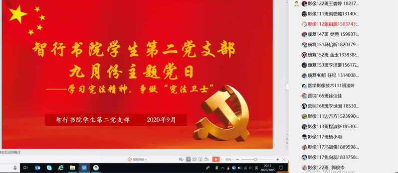 为贯彻落实习近平总书记关于宪法学习宣传教育的系列重要指示精神,9月13日,智行书院学生第二党支部开展了“学习宪法精神,争做宪法卫士”九月份主题党日活动。本次活动由党支部书记闫亚菲同志主持,支部全体党员参加。