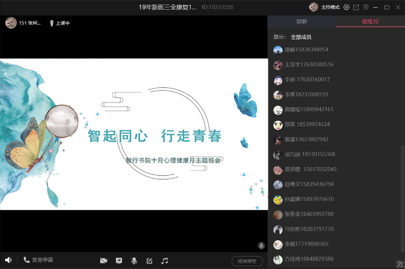 应新乡医学院三全学院心理健康宣传周活动要求,呼吁大学生关注自身心理健康,不断完善人格,预防和缓解智行学子在疫情封校期间出现的心理压力和负面情绪,引导学生以健康向上的姿态迎接机遇和挑战。10月16日-10月28日,由智行书院主办的“智起同心,行走青春”为主题的十月心理健康周系列心理活动逐步开展。书院全体老师、各班心理委员、心理信息员以及学生代表共500余人参加此次活动。