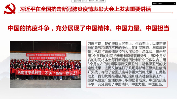 最后,闫亚菲同志总结道:“在新冠肺炎疫情防控斗争中,我们敢于斗争,团结一切可以团结的力量,坚持人民至上,生命至上,这就是我们能共克时艰的力量之本、信心之源。”