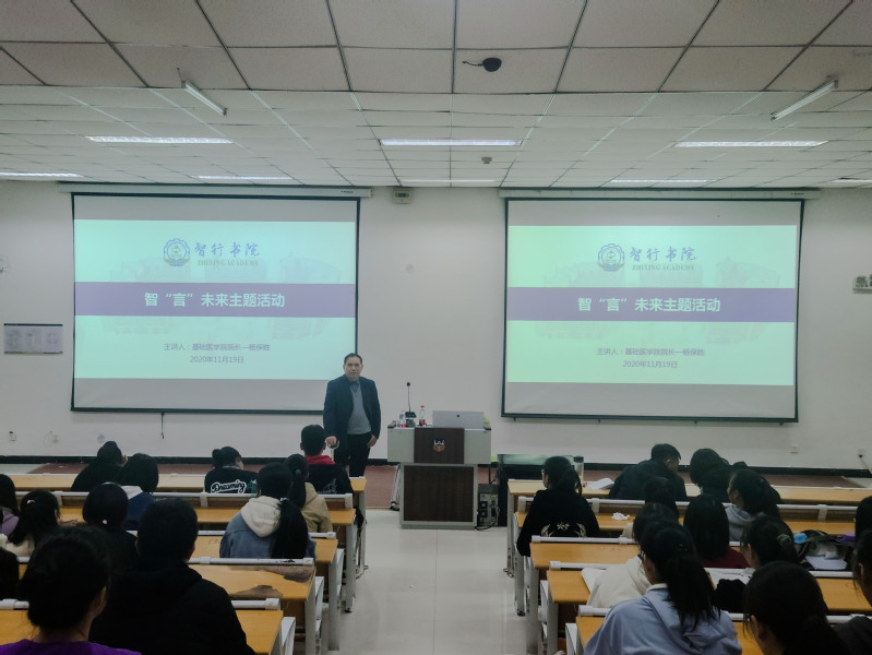 为响应习近平总书记对当代大学生“不负青春、不负韶华、不负时代”的殷切期望,培养学生的时代担当,提升当代青年的思想水平,通过时间管理助力学生成长成才,11月19日晚,基础医学院院长杨保胜应邀在谨学楼D1教室开展“智‘言’未来”大讲堂之“时间管理与成才——大学生课余时间利用”主题讲座。讲座由智行书院辅导员乔帆主持,各书院400余名学生参加。