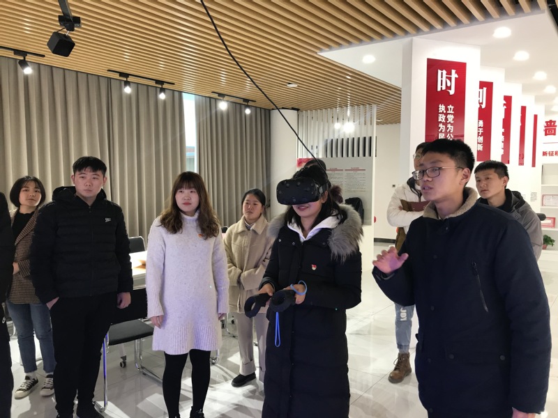 活动开始,党支部书记孙峰带领大家参观书院新时代党员活动室。在VR体验区,现场党员代表体验了“红军过雪山”、“飞夺泸定桥”等模拟场景,“红军过雪山的场景太真实了,我刚刚深切体会到长征的不易,非常震撼,这样的学习方式很深刻!”张改改同志说道。同时,大家还借助VR设备现场参观抗日纪念馆,以沉浸式互动体验的方式让一幕幕红色历史场景鲜活起来,让师生党员更加深切地感悟到了党的艰辛历程。