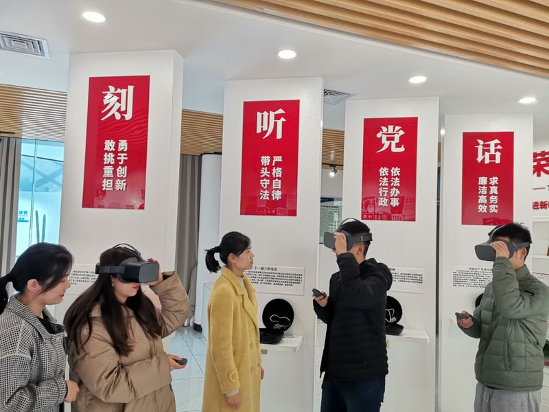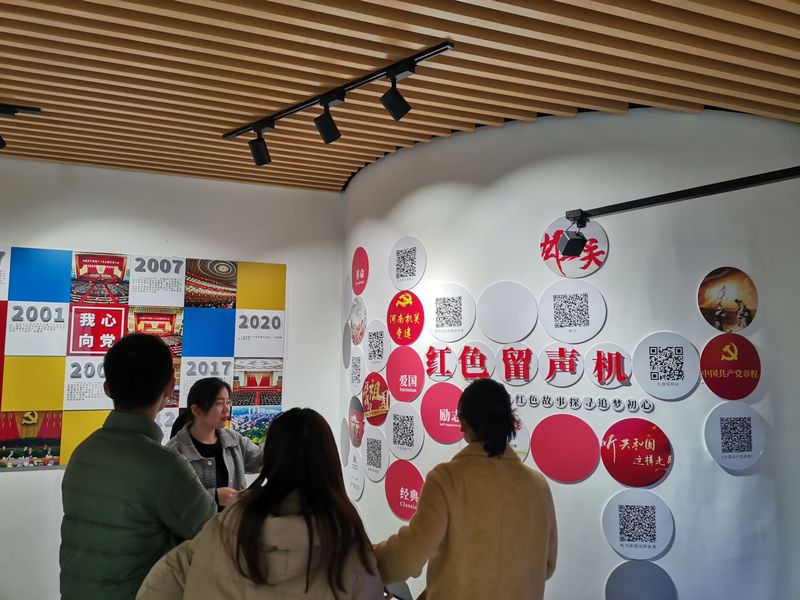 最后,通过扫描红色留声机墙面的二维码,党员们可以获取四史教育的音频资料;可以通过智慧党建平台了解党的光辉历程,也可以下载智慧党建平台APP进行在线学习。党员们戴上VR眼镜走进党的关键历史时期,了解党的历史与文化。桑庆芳表示:“希望通过智能化的手段,不断激发党员的爱国热情,坚定党员的理想信念。”