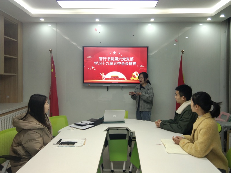 11月13日,智行书院学生第六党支部在第四学生公寓党员工作站组织开展十一月份政治理论学习,本次学习的主题为“学习解读十九届五中全会”,会议由党支部书记桑庆芳主持,全体党员参加。