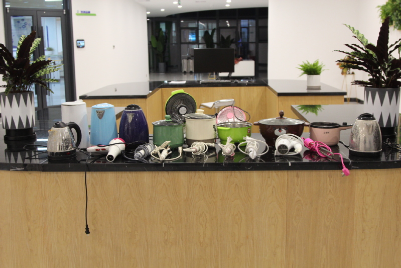 此次检查首先对各个宿舍楼层的基础建设进行了排查,学生宿舍的卫生情况整体良好,干净整齐,温馨舒适。紧接着,在刘凯书记的带领下严查在宿舍内私拉电线、使用违规电器等违规行为,对于违规使用的电器予以没收,对违规使用电器的同学进行批评教育。排查结束在四号楼功能区对没收的违规电器进行展示,对全体学生进行警示教育。