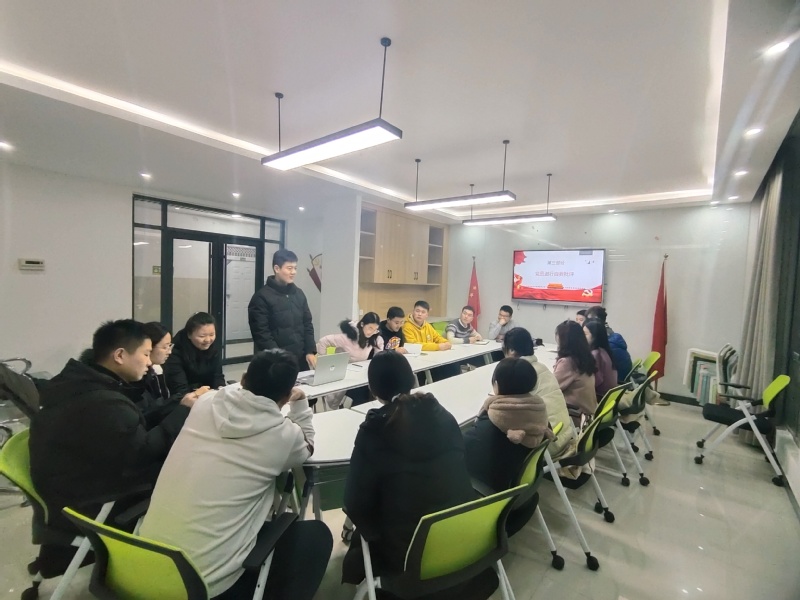 首先,由党支部书记乔帆对近期工作进行总结性发言。乔帆同志指出:本党支部于十月份建立,由最初的成立发展到如今的十八名正式党员与八名预备党员。我们的队伍正在不断壮大,因此我们更应该努力做到积极带头作用。