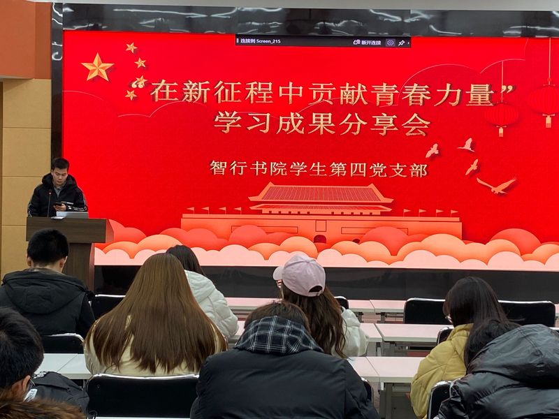 为推动深入学习宣传贯彻党的十九届五中全会精神,智行书院学生第四党支部于12月30日举办“在新征程中贡献青春力量”学习分享会。会议由支部书记陈柯同志主持,党支部全体党员参加。