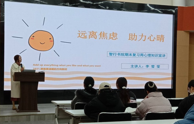 通过本次宣讲,学生们知道了如何在考试前给自己做心理调节,相信智行书院的学生们通过自己的努力必定会取得优异的成绩,加油,智行学子!