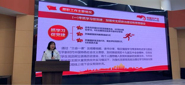 围绕2021年的党建工作,刘凯强调:一要强化党建引领,坚决筑牢坚强政治保证。切实提高政治站位,增强“四个意识”,坚定“四个自信”,做到“两个维护”。二要强化主体责任落实,筑牢意识形态阵地。筑牢党建根基,规范党内政治生活,主动适应信息时代新形势,运用互联网、大数据等技术推进“智慧党建”工作。掌握主流阵地话语权,形成强大的正面的舆论氛围、导向。支部书记要掌握学生党员的思想动态,做好引领。三要强化党建促保障、促服务的意识。将党建工作融入实际工作中,树立品牌意识,各支部要结合自身特点,结合工作实际,创造特色品牌,丰富党建活动的内容和形式,有针对性地开展特色党建活动。
