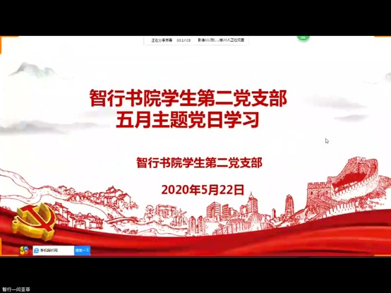 5月24日上午,智行书院学生第二党支部开展了五月份线上主题党日活动。本次活动由党支部书记闫亚菲主持,党支部全体党员参加。