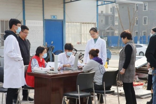 弘扬雷锋精神,践行社会主义价值观,乔帆老师在志愿服务前讲到:“此次为在场工人量血压、发放物资等,既是我们实践与理论相结合的举措,也是我们弘扬雷锋精神的实践,更是我们青年的责任与义务。”随后,乔帆老师组织在场志愿者安排场地、摆放物资、维持秩序等,面对面、手把手为在场志愿者讲述如何使用血压计,如何宣传医学知识等,使在场志愿者深刻感受到科技与医学教育的融合与创新。在场志愿者分工明确,各尽其责,其中三人为大家量血压,他们认真测量、耐心讲说,井井有条有条地进行着各项工作;其余人负责分发手套、向大家讲述医学小知识,提出饮食健康建议。在场群众纷纷表示;“感谢大家对我们的关心,让我们增加了对自己健康的了解,也知道了更多医学小知识。”