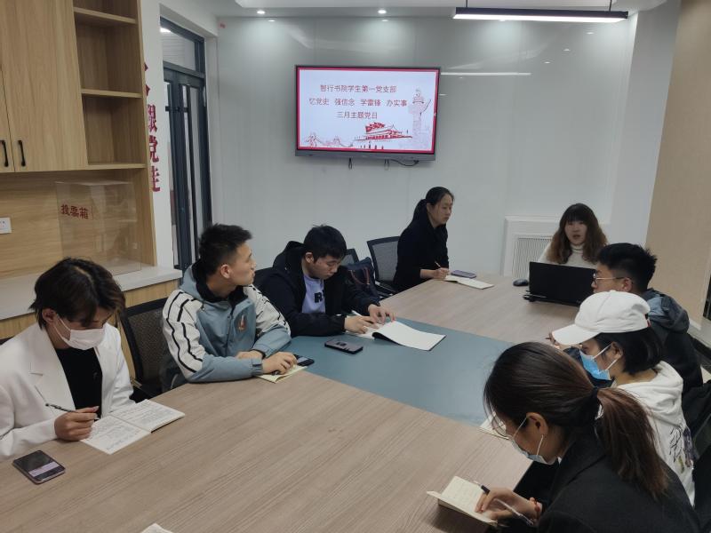 为深入学习领会习近平总书记在党史学习教育动员大会上的重要讲话精神和关于党史的重要论述及弘扬雷锋精神,3月21日,智行书院学生第一党支部在智行书院3#公寓党支部工作站召开了“忆党史,强信念,学雷锋,办实事”主题党日活动,智行书院学生第一党支部全体党员参加,活动由支部书记孙峰主持。