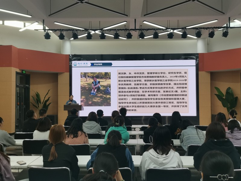 为了进一步完善学业导师制度,更好地实行因材施教和个性化培养,充分发挥专业教师在大学生学业发展过程中的指导作用,增强师生课堂内外的联系。4月7日,健康管理学院樊文静老师及卢伟丽老师与2019级市场营销84-85班全体同学在智行书院四号楼多功能报告厅举行了学业导师宣讲会。