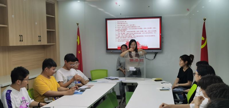 智行书院学生第八党支部成立大会在庄严的国歌声中拉开序幕。按照党支部选举有关规定,参加本次大会的党员审议并表决通过了大会选举办法、候选人名单及监票、计票人员。党员和列席人员们一致认为,大会选举办法(草案)严谨、科学、规范,符合有关规定,具有充分的民主性和程序性,为本次大会顺利选举提供了可靠依据。