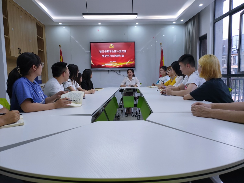 智行书院学生第六党支部6月24日晚在2#公寓党支部工作站开展党史学习交流研讨会,桑庆芳同志主持,智行书院第六党支部全体党员参加。