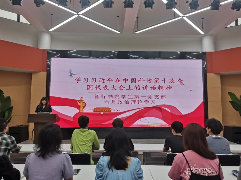 6月8日晚,智行书院学生第一党支部在书院多功能厅开展以“学习习近平主席在中国科协第十次全国代表大会上的讲话精神”为主题的政治理论学习,会议由孙峰书记主持,第一党支部全体党员参加。