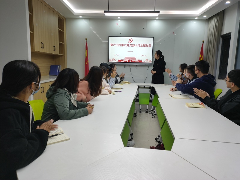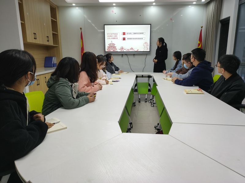 智行书院学生第六党支部10月21日晚在2#学生公寓三楼党员工作站开展了“学习习近平在纪念辛亥革命110周年大会上的重要讲话”为主要内容的主题党日活动。活动由党支部书记苗琨同志主持,全体同志参加。