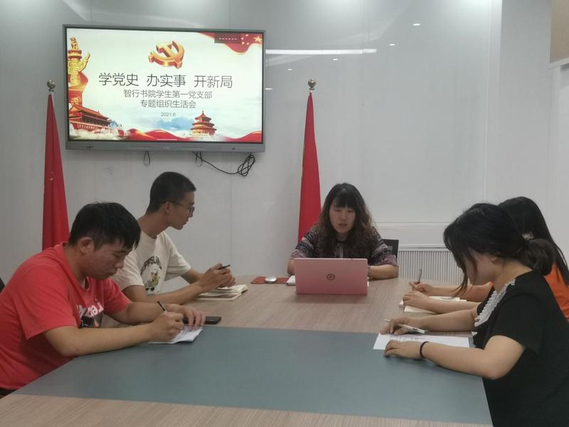 为更好的落实党史学习任务,提升党员政治理论学习的自觉性,智行书院学生第一党支部于6月24日晚在智行书院3#公寓党支部工作站开展专题组织生活会。会议由支部书记孙峰主持,支部全体党员参加。