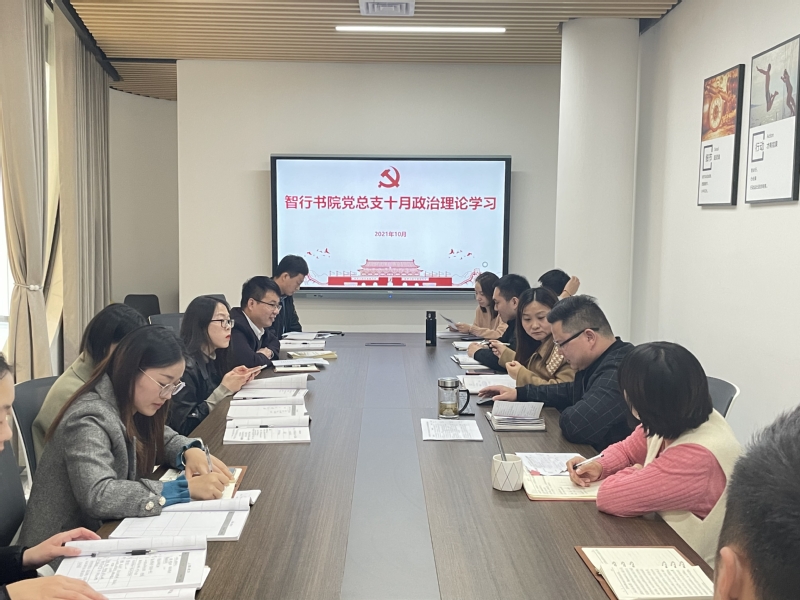10月25日上午,智行书院党总支于书院会议室开展十月份政治理论学习,集中学习了“习近平总书记在纪念辛亥革命110周年大会上的重要讲话”、“习近平总书记回信勉励全国高校黄大年式教师团队代表”、“习近平总书记在中央人才工作会议上强调深入实施新时代人才强国战略加快建设世界重要人才中心和创新高地”等内容。会议由智行书院党总支书记刘凯主持,党总支全体教师党员参加。