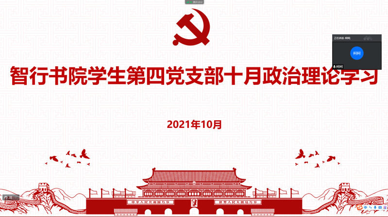 10月28日,智行书院学生第四党支部以线上会议的形式组织开展10月政治理论学习,全体党员参加会议,党支部书记陈柯主持会议。