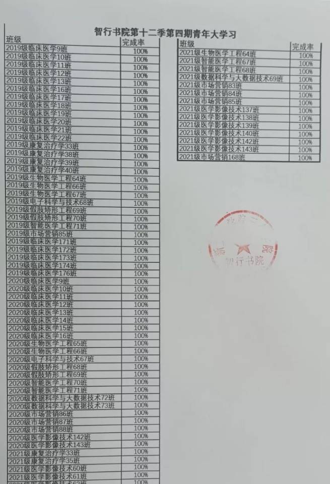 下面,小智将公示本周青年大学习完成率优秀的团支部,一起来看看那些团支部上榜了叭!