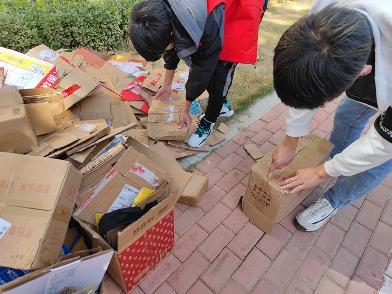 通过快递纸盒资源回收活动,提高了同学们的节约意识和环保意识,使同学们树立资源循环利用观念,养成勤俭节约的习惯,从小事做起,珍惜资源,保护环境,同时也加强了同学们的快递纸盒回收理念,为实现资源的可持续发展贡献一份力量,为建设环境友好型“全”世界尽微薄之力。