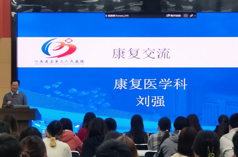 聘任仪式结束后,刘强教授为师生们做了题为“康复政策及治疗师培养”的学术讲座。刘强首先解读了省卫健委最新下发的《关于印发河南省加快推进康复医疗工作发展的实施方案的通知》,表明在国家的支持下,康复医疗的重要性日益凸显,未来对康复治疗学专业人才的需求量会越来越大,就业面也非常广泛,让同学们对今后的康复医疗发展趋势有了更深入了解。接着,他从如何树立正确的就业观和考研观,为什么要大力发展康复医疗以及如何基于ICF框架的融合教育三观来拓宽就业途径三个方面进行了详细的讲解。刘强还通过展示和分析患者康复案例,强调了作为康复科医生始终要坚持以人为本、全心全意为病人服务的理念,帮助患者功能状态得到最大的提升,最终回归家庭、回归社会,提高其生活质量,这是康复的最终目的。刘强旁征博引、深入浅出,把专业的知识与生动的事例相融合,给大家带来了一场丰富的知识盛宴。