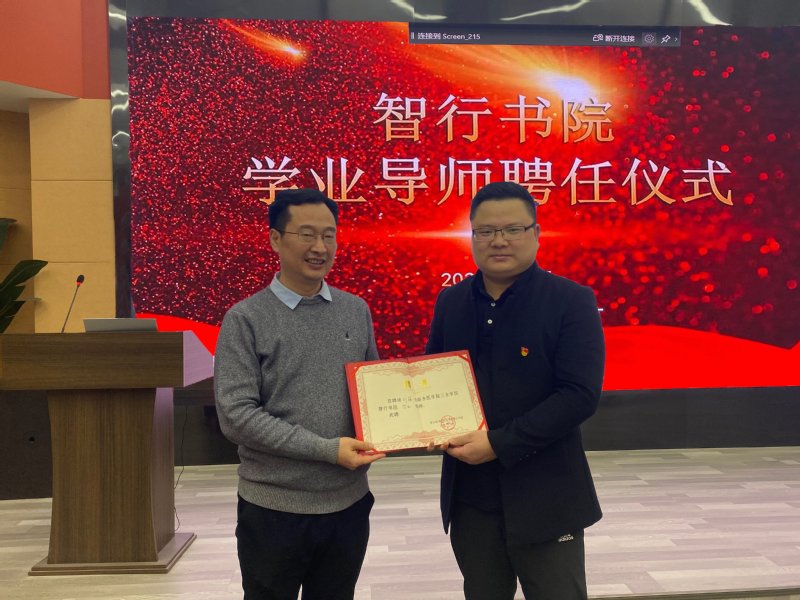 会议伊始,书院举行了聘任仪式,正式聘任刘强担任书院学业导师。党总支书记刘凯代表书院为刘强颁发了聘书,并希望以学业导师为纽带,搭建双院协同育人平台,在学生的思政教育、学业指导、学术研究、素质提升等方面予以引导和帮助。