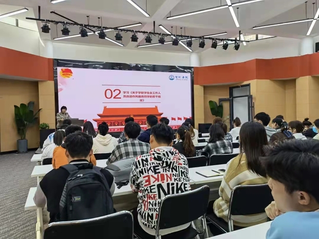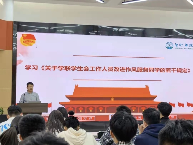 为深入学习“七一讲话精神”,贯彻落实《关于学联学生会工作人员改进工作作风服务同学的若干规定》的有关要求,加强智行书院团学队伍建设,切实做到“全心全意为同学服务”,10月21日,智行书院在四号楼多功能报告厅开展2021-2022学年团学组织干部培训会。智行书院团总支书记孙媛慧、辅导员乔帆出席本次会议,书院全体学生干部参加。
