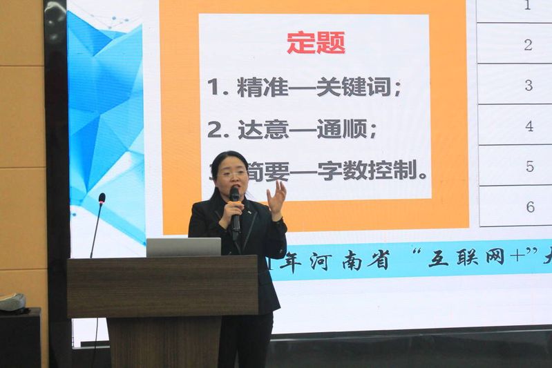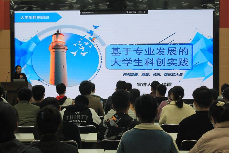 靳瑞霞围绕专业与科创的关系、科研团队组建及素质提升等内容,从“明确方向”、”做好准备”、”具体实施”、”有价值的等待”四个方面进行了具体阐述。在谈到专业发展与科研的关系时,她结合生物医学工程专业,智能医学工程专业和数据科学与大数据技术专业发展特点,指明未来医疗发展应该是全面预防、精准治疗和健康管理的结合体,术业专攻很重要,同学们要正确全面的认识自己的专业。随后,靳瑞霞着重说明了如何打好科创工作基础,一是要学会高质量的阅读,这是科创的起源;二是要学会转变思维,始终树立积极、坚持的态度,知行合一,才能做出结果。在具体实施部分,靳瑞霞结合历届“互联网+”大学生创新创业大赛、挑战杯获奖项目为例,从团队组建、科创选题及定题、申报书撰写等方面做深入解析。最后,靳瑞霞勉励同学们,要享受科研过程,并为之不断前行。