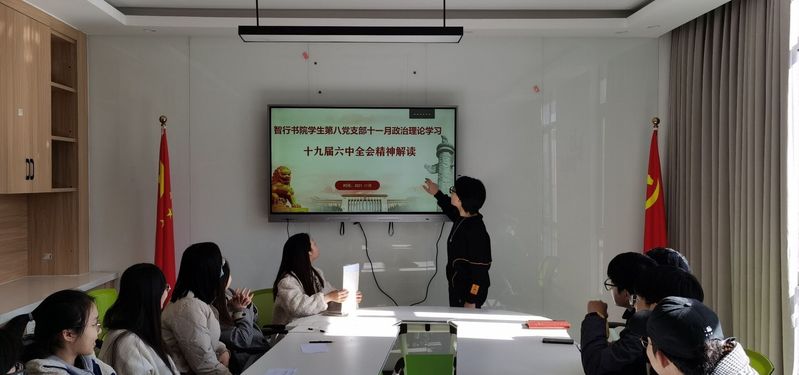 11月20日晚,智行书院学生第八党支部在2#公寓党支部工作站开展政治理论学习。本次会议由党支部书记娄冰琼主持,学生第八党支部党员全体参加。