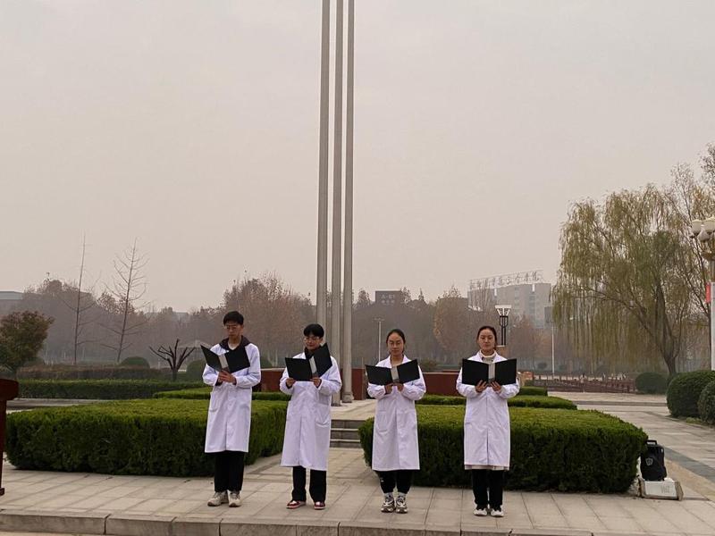 礼毕,学生代表刘亚飞在国旗下讲话,他以“以梦为马 不负青春”为题,鼓舞同学们奋发图强,砥砺前行。随后,四位同学代表领诵,全体师生诵读《请党放心 强国有我》,铿锵有力的朗读声,点燃了在场每一位莘莘学子的爱国、爱党情怀,同时也让自己对理想的追求更加坚定。