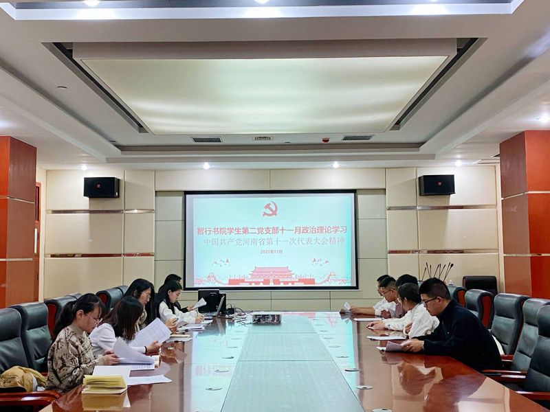 11月21日,智行书院学生第二党支部集体成员在综合楼二楼会议室通过线上线下集中学习了“十九届六中全会精神解读”、“中国共产党河南省第十一次代表大会精神”、“新乡医学院三全学院教师师德失范行为负面清单及处理办法(试行)”等内容,并以此为主题开展学习十一月份政治理论学习集体会议,党支部全体成员参加。