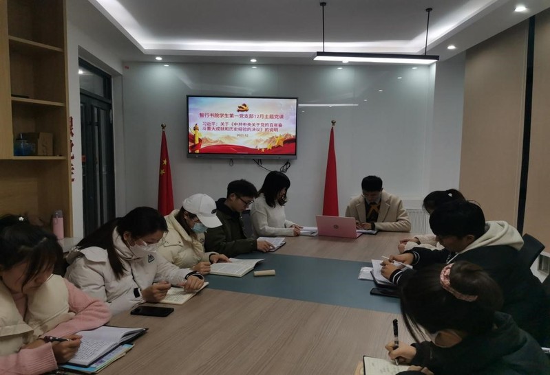 为使党员把党的历史搞清楚,把党所走的路搞清楚,12月23日下午,智行书院学生第一党支部在智行书院智行书院3#公寓党支部工作站开展了关于《中共中央关于党的百年奋斗重大成就和历史经验的决议》的说明专题党课。会议由党支部书记陈林主持,第一党支部全体党员参加。