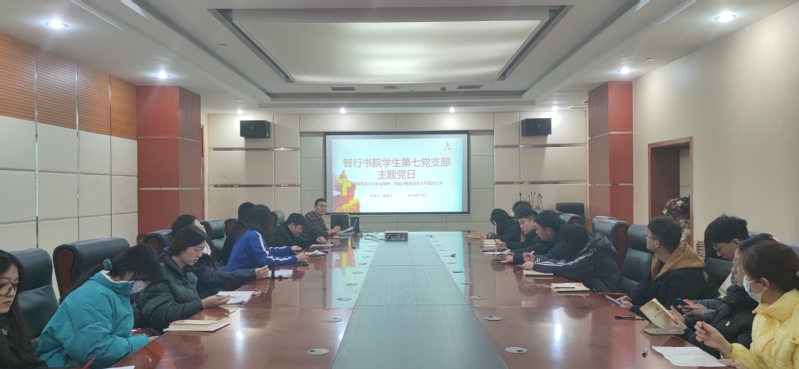 12月20日下午,智行书院学生第七党支部在新乡校区综合楼二楼会议室开展“贯彻落实十九届六中全会精神,决战决胜建设高水平医科大学”主题党日活动,会议由党支部书记胡海洋主持,党支部全体党员参加。