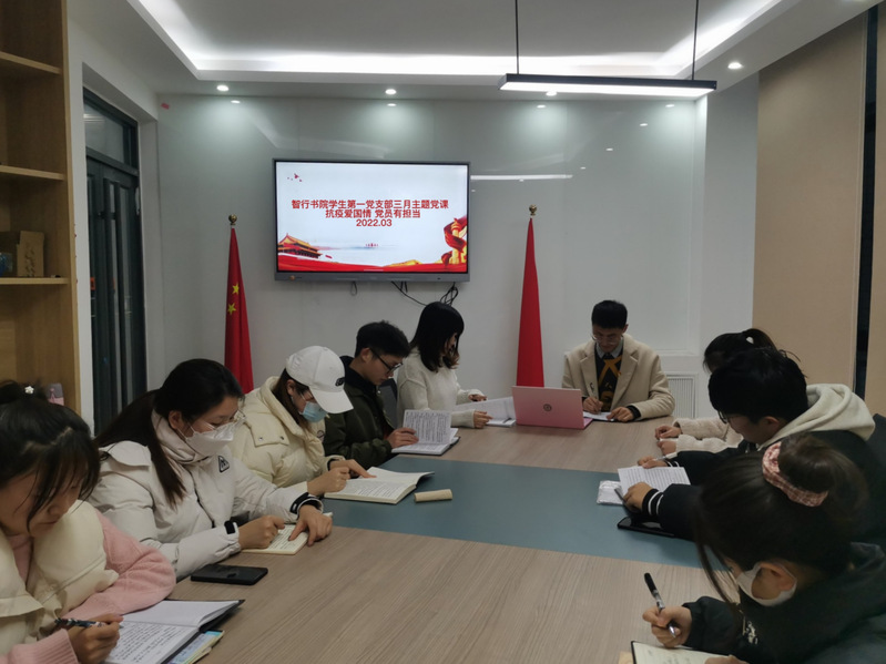 3月25日晚,智行书院学生第一党支部在智行书院3#公寓党支部工作站开展“抗疫爱国情,党员有担当”专题党课,会议由党支部书记陈林主持,第一支部党员全体参加。