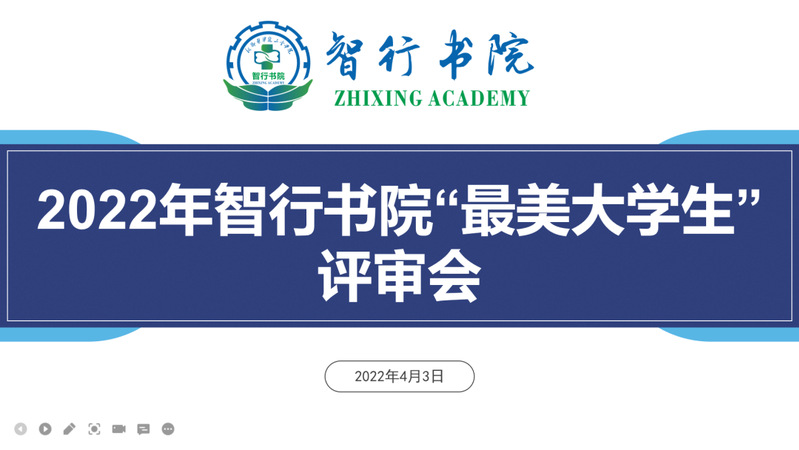 评选汇报会由候选人采取PPT的形式通过线上展开汇报,每人汇报时间限时8分钟。评选会上,7名候选人结合自身大学学习生活实际,用质朴的语言和真挚的情感,分别从个人基本情况、先进事迹、参评特色以及获奖情况等方面进行汇报展示。参评候选人中,有连续两年荣获国家奖学金的优秀学霸;有在专业领域荣获多项发明和创造及专利的创新实践人才;有扎根基层、勇于奉献、不畏艰苦、积极投身志愿服务和社会实践的志愿者......他们以优异的成绩、甘于奉献和自强不息的精神,深刻诠释智行青年踔厉奋发、笃行不怠、奋发有为、自强不息的拼搏精神,为广大学生树立了榜样。