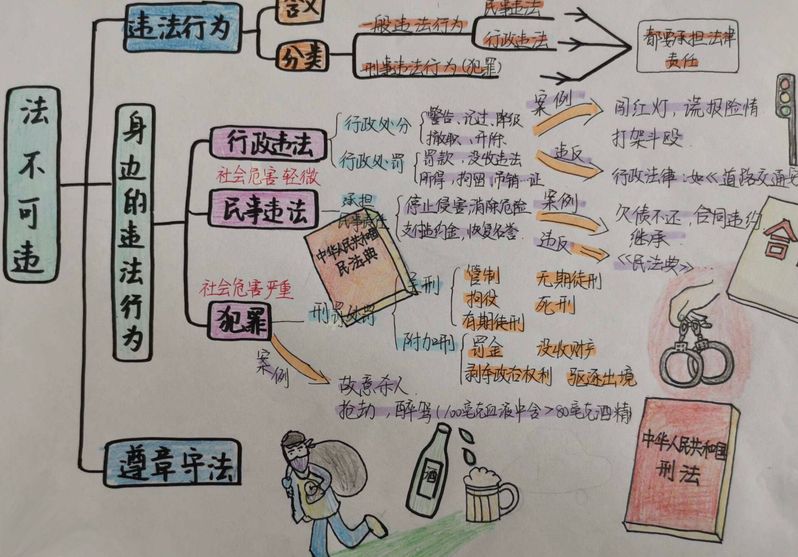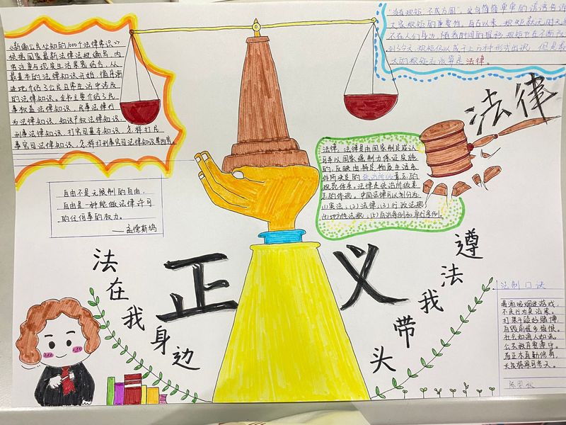 学生第二党支部全体党员通过研读法治宣传教育文件、梳理法治知识要点、构造法治思维脉络,以绘制思维导图的形式培养社会法治思维,提升法治素养。学生第七党支部党员紧扣“法治”主题,结合自身学习生活实际,通过绘制主题鲜明的手抄报使法治观念入脑入心。此外,党员们还结合各自绘制的思维导图和手抄报进行逐一展示,展开互评互点,使法律知识融在心里。