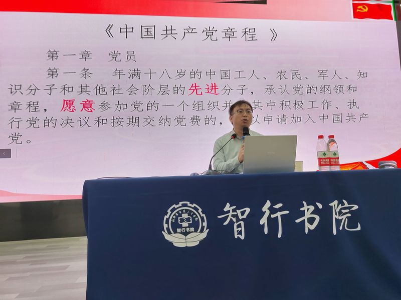 4月7日中午,培训班正式开班,智行书院党总支书记刘凯再开班仪式上作了动员讲话,要求参训的积极分子要深刻认识此次培训的重要性,结合自身实际,自觉遵守培训纪律,珍惜机会,争取早日成为一名合格的共产党员。入党积极分子宋涛作为培训班学员代表进行发言,他表示今后要认真学习理论知识,不断提高政治素养,促进自身全面发展进步,时刻以一名共产党员的标准来严格要求自己,争取在思想上和组织上早日加入中国共产党。
