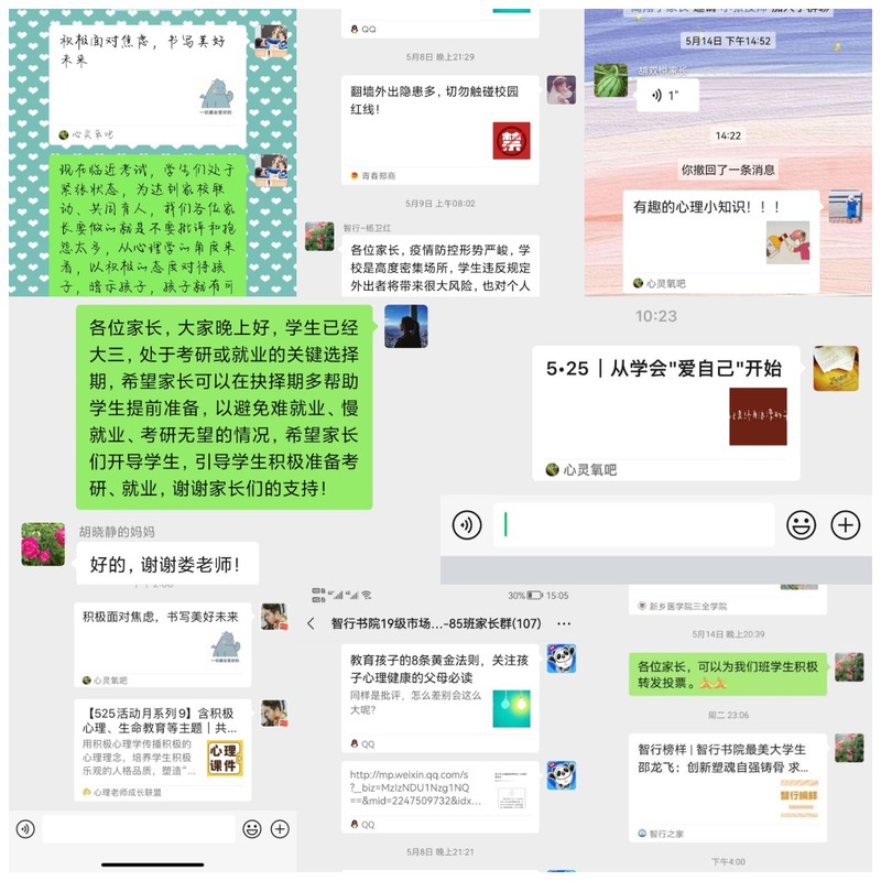 书院不断拓展家校沟通渠道,充分利用书院官微、抖音等新媒体平台和家校,定期推送学生活动和心理知识,方便家长直观了解学生在校期间的学习生活。组建以专业班级为单位的家校微信群,定期电话家访,引导家长树立正确教育观,以健康和谐的家庭环境影响学生,持续强化“家庭+学校”的协同联动,增加心理工作的保障力。